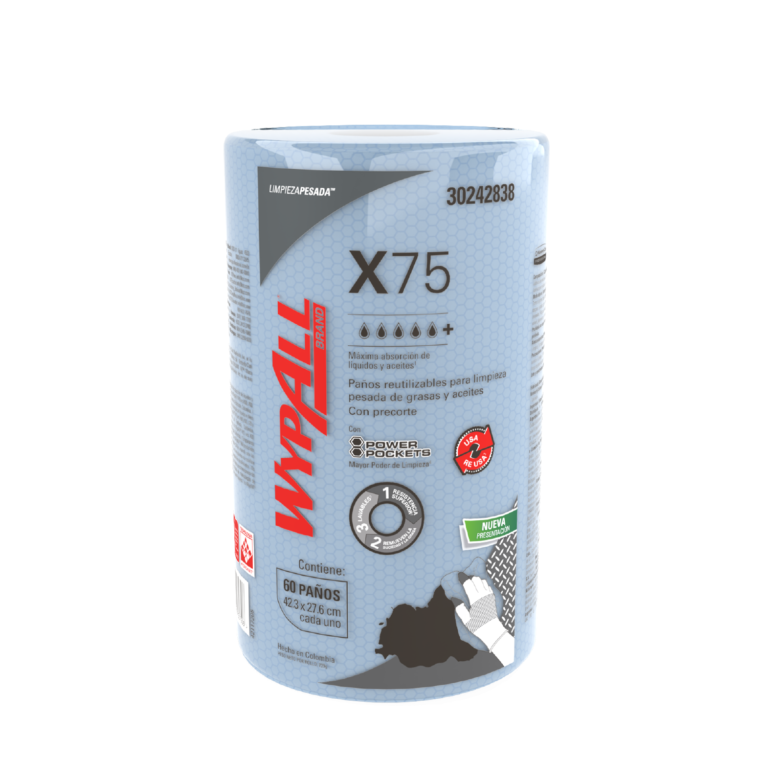 Los paños de limpieza industriales Wypall X75 combinan resistencia y absorción en un formato práctico de rollo. Gracias a su tecnología Hydroknit, ofrecen una limpieza rápida y eficiente en ambientes exigentes.