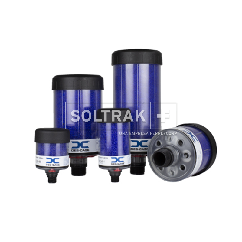 El respirador desecante Des-case serie Ventguard integra una tecnología de válvula de retención, que funciona aislando el sistema y solo "respira" cuando es necesario y prolonga la vida útil del respirador. Es ideal para operaciones intermitentes en bombas y tanques de almacenamiento. Previene la saturación prematura del gel de sílice. Su elemento filtrante de poliéster de 7 elementos elimina la contaminación atmosférica hasta 3 micrones absolutos.